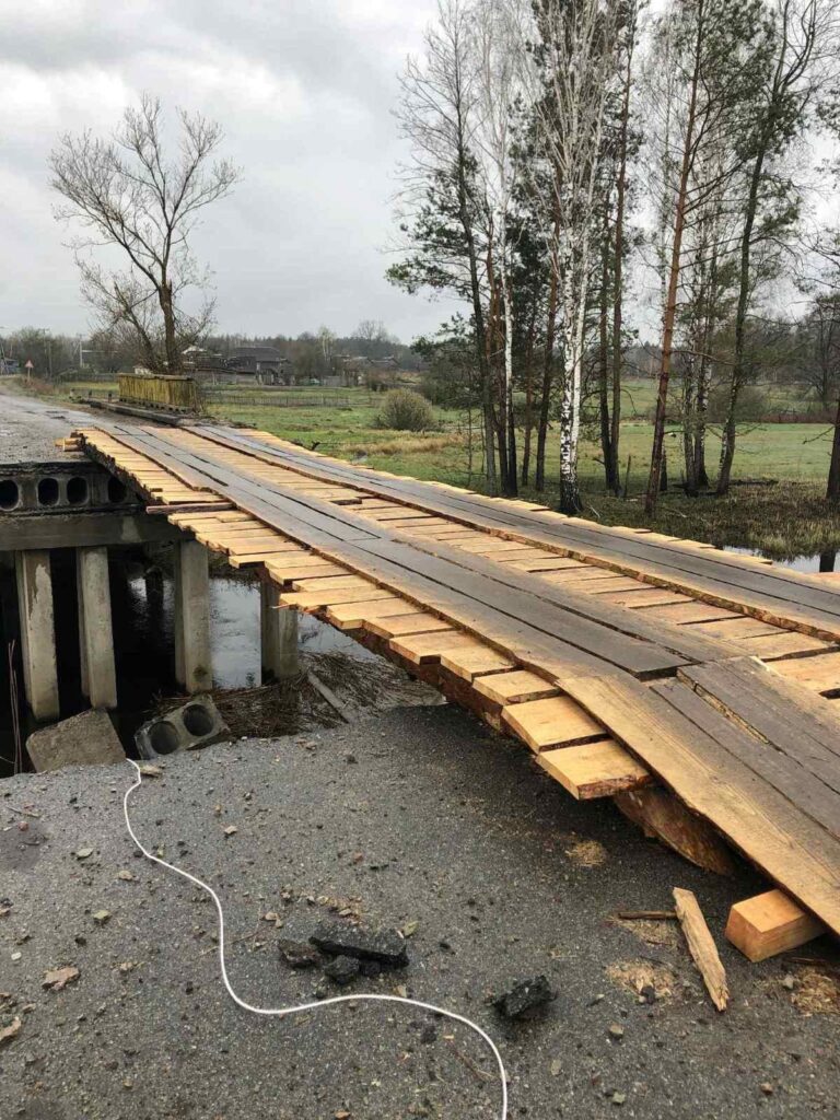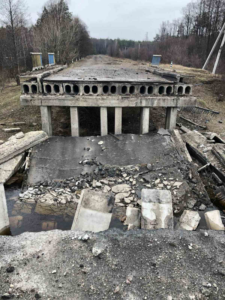 «Під’їжджаємо до мосту, а мосту немає. Міст зірваний», — каже Наталія. Усього на території зірвали три мости: у Грезлі, Новій Радчі та той, що веде на Київ.